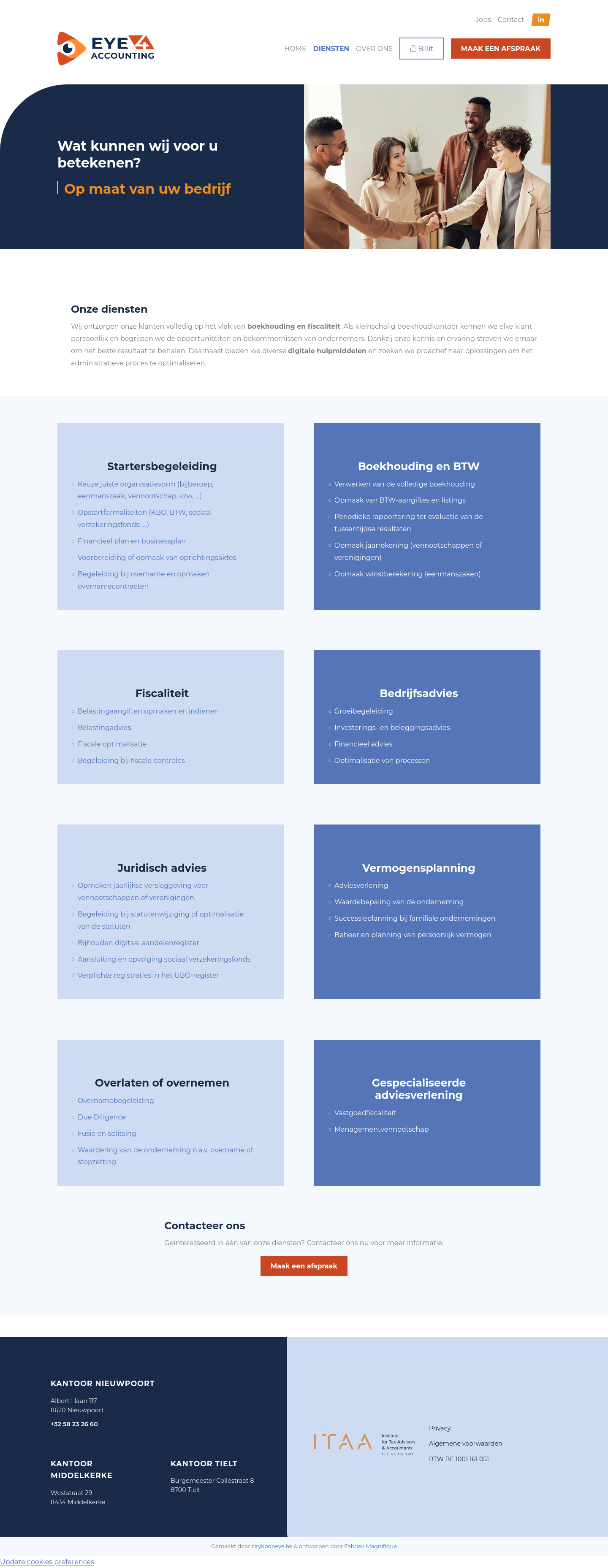 Voor Eye 4 Accounting ontwikkelde ik een website die hun diensten helder en professioneel presenteert.