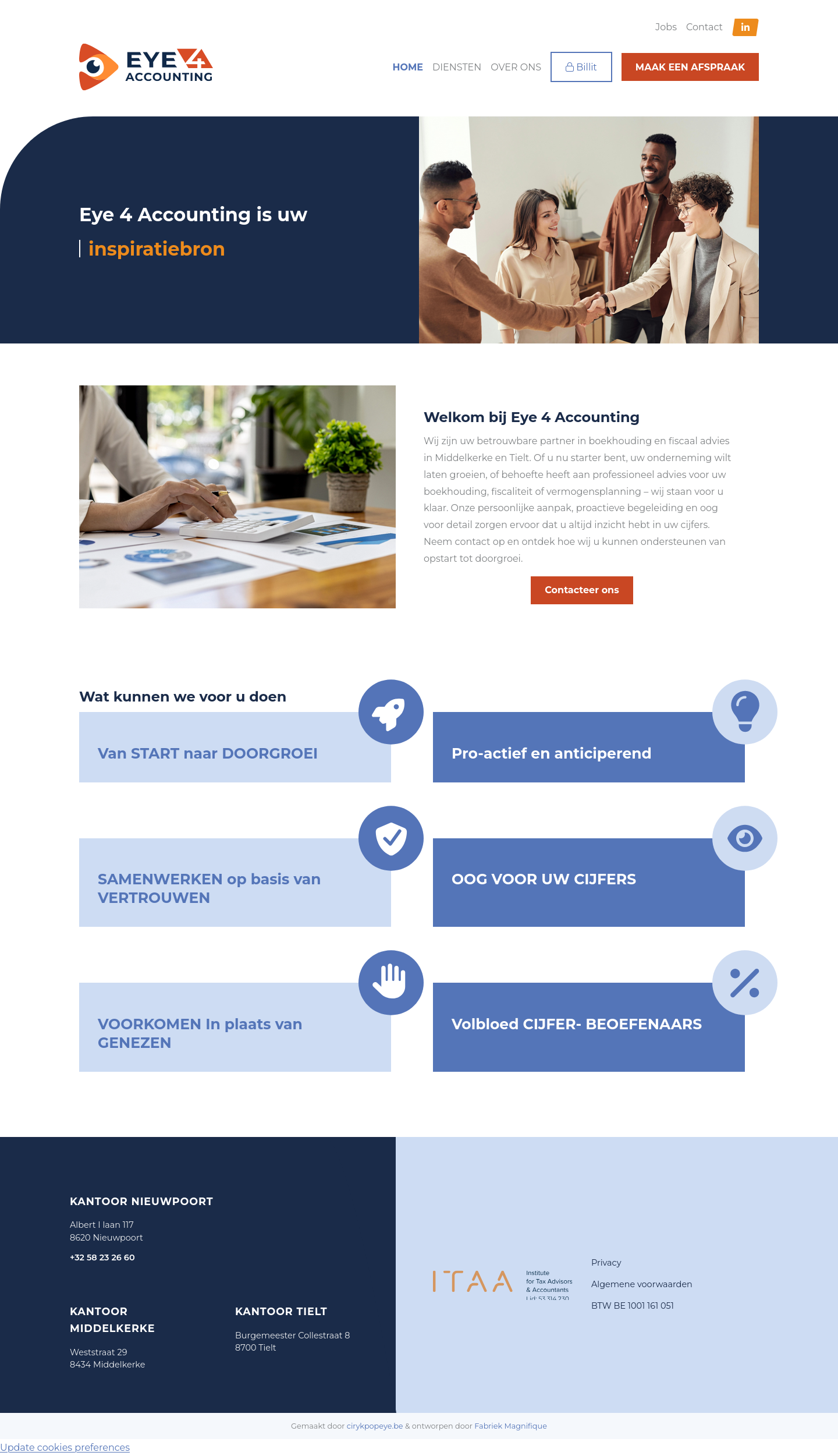 Voor Eye 4 Accounting ontwikkelde ik een website die hun diensten helder en professioneel presenteert.